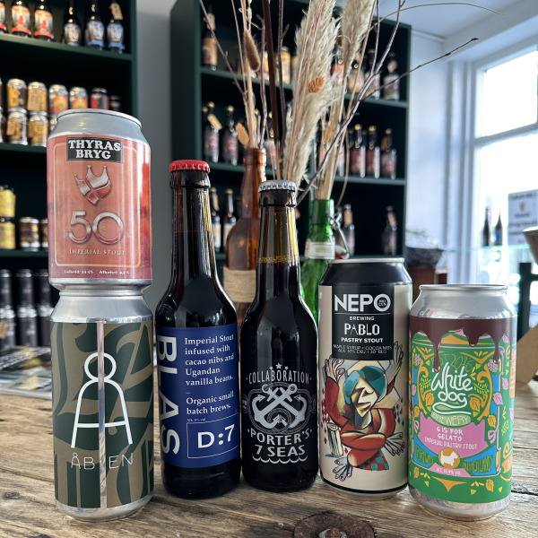 I den mørke har vi denne gang en Rauch Bier fra Åben der er bryggeren Lasses ynglingsøl, Michael fra Thyras Bryg er blevet 50 og det fejrede han blandt andet med at brygge en Imperial Stout. BLAS er tilbage efter en kort vinter pause har denne gang brygget en chokoladeagtig Imperial Stout. Ø-Bryg og Gamborg har været i gang med et collab og det resulterede i en fyldig Porter. Fra det udenlandske har vi igen øl fra Polske NEPO og fra Holland har vi fra White Dog en Ice Cream Pastry Stout