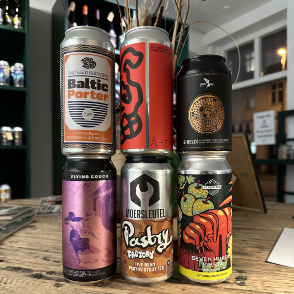 I den mørke 6pack har vi i anledningen af Baltic Porter Day d.17 Januar fundet et par Baltiske Portere fra Bad Seed Brewing der samme dag blev kåret til Årets Bryggeri 2025 af BeerbloggersDK og kolleger i branchen. Den anden Baltiske Porter kommer fra Flying Couch. Herfra går vi videre til et collab imellem Åben og Tuju som har være i gang med chillien og Moersleutel har leget med fem forskellige bønner i deres Stout. Lough Gill har leget med Irish Whiskey Tønder og Basqueland vil endnu en gang lege med i de mørke øl