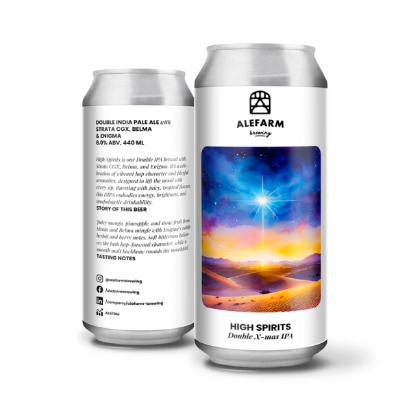 High Spirits er en DIPA, der er tørhumlet med Strata CGX, Belma og Enigma